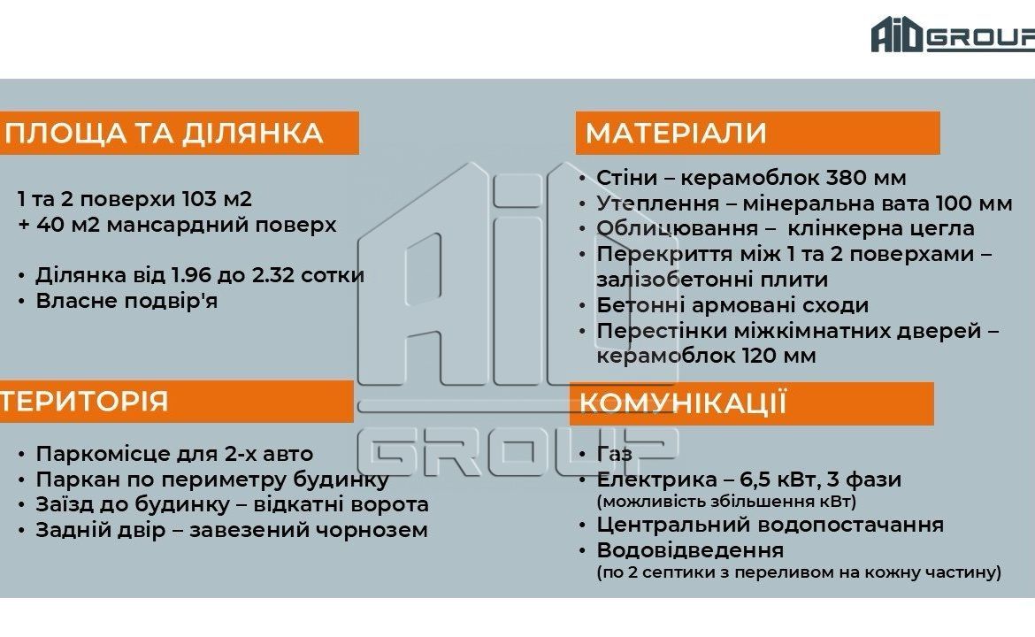 Будинок 143 м2 ( 2 поверхи + мансардний поверх 40м2)