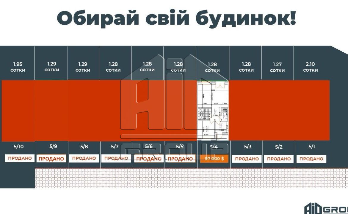 Ціна від 97 000 в залежності від площі ділянки.