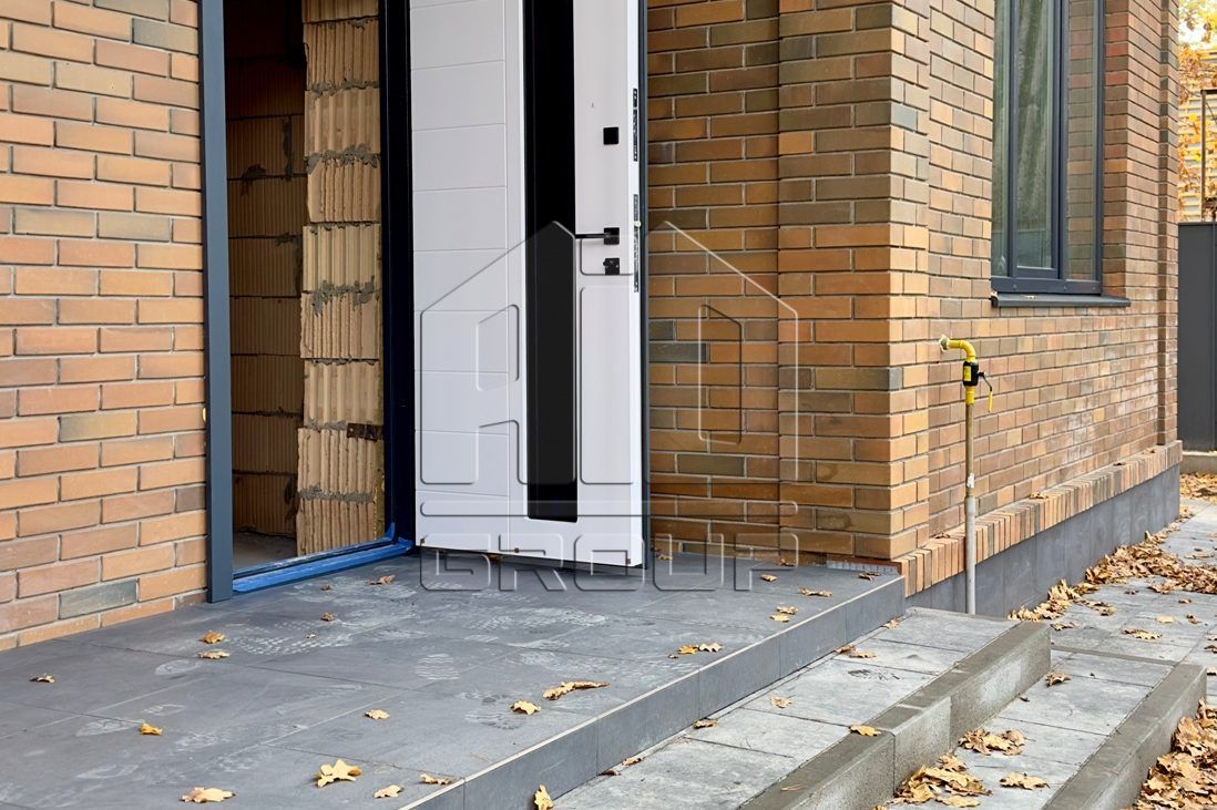 Парковка під декілька авто, в’їздна група, відмостка по периметру будинку, доріжки – все викладено сучасною бруківкою. По ділянці виконано благоустрій, завезений чорнозем.
